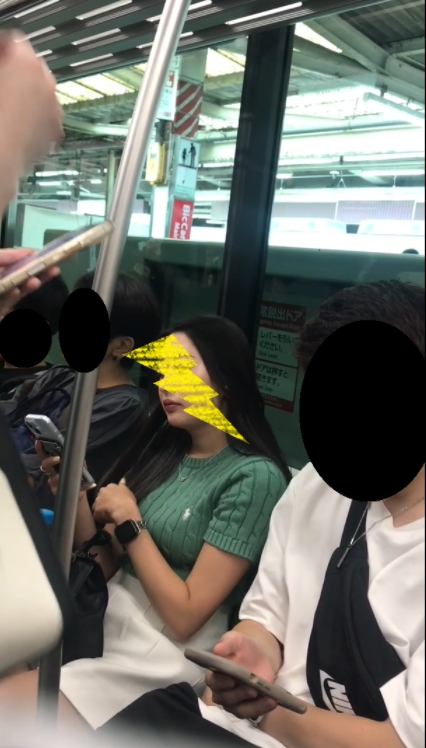 (電車対面)(顔出し)タイトミニをお召しになって…すらっと引き締まったキレイなパンストあんよをむき出しにしちゃう…OL若奥さま